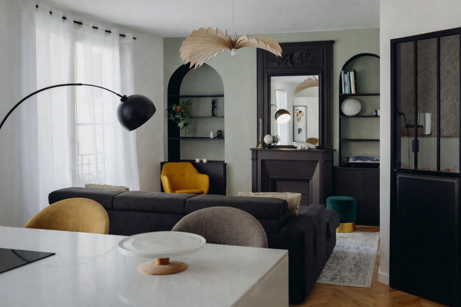 Créer une chambre dans un salon de 40 m² avec cuisine ouverte et cheminée en marbre était le défi lancé par ce jeune couple. Ils avaient eu un coup de cœur pour ce 2 pièces plein de charme, idéal pour la vie à deux, mais devenu contraignant après la naissance de leur enfant. Après huit mois de chambre partagée, ils souhaitaient offrir à leur fille une vraie chambre et retrouver leur intimité.