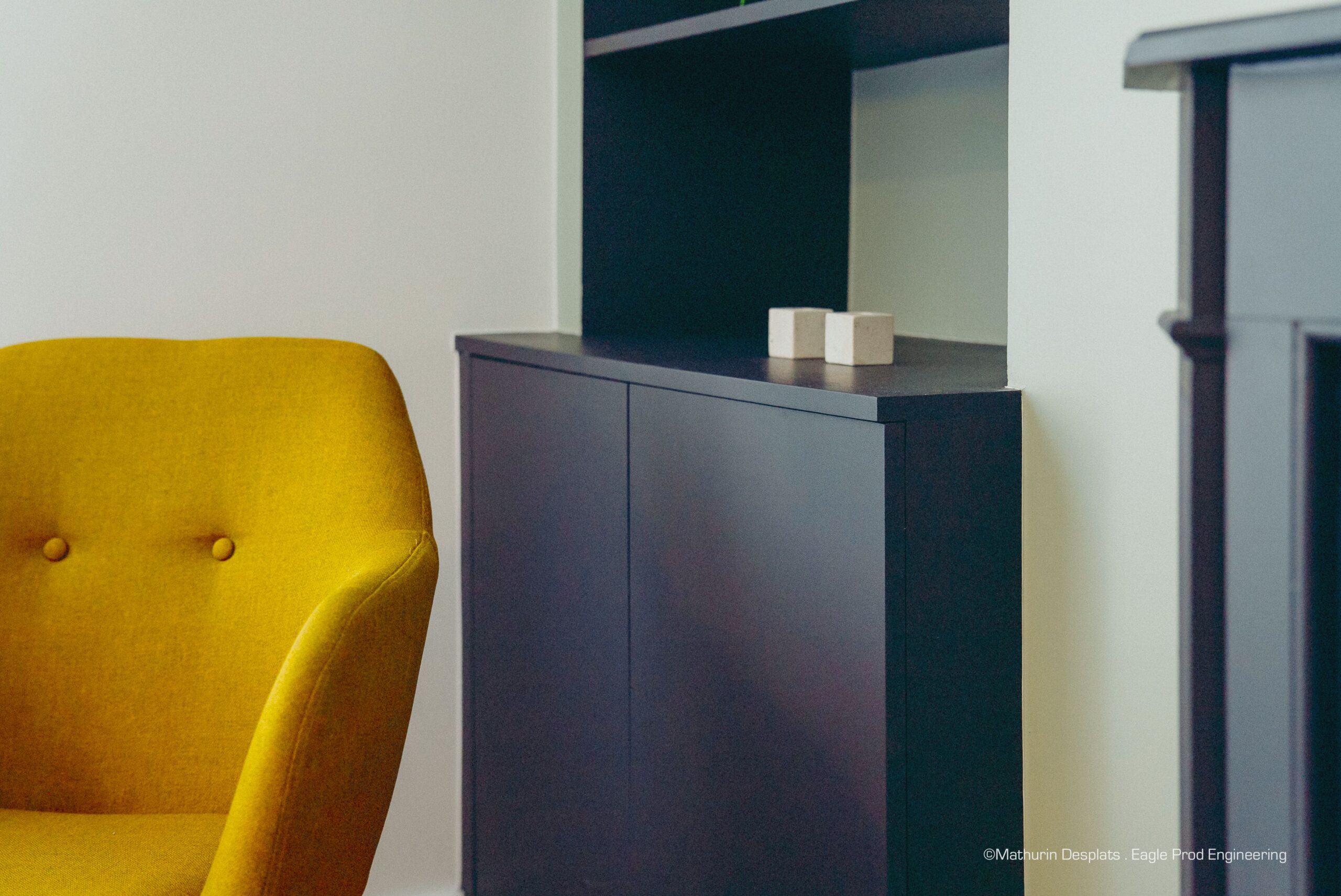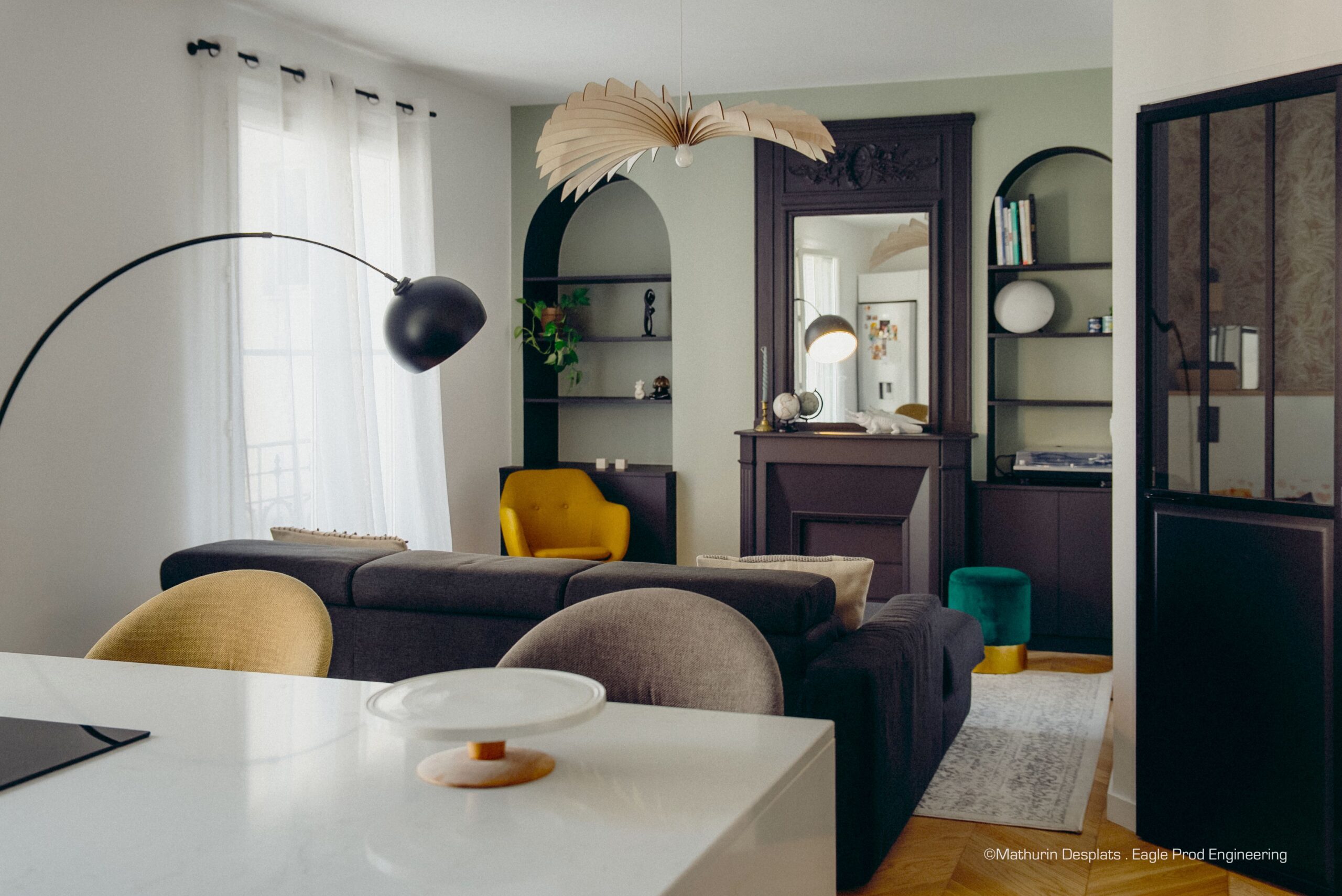 Créer une chambre dans un salon de 40 m² avec cuisine ouverte et cheminée en marbre était le défi lancé par ce jeune couple. Ils avaient eu un coup de cœur pour ce 2 pièces plein de charme, idéal pour la vie à deux, mais devenu contraignant après la naissance de leur enfant. Après huit mois de chambre partagée, ils souhaitaient offrir à leur fille une vraie chambre et retrouver leur intimité.